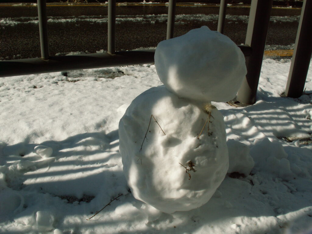 カフェの外に出ると雪だるまを発見